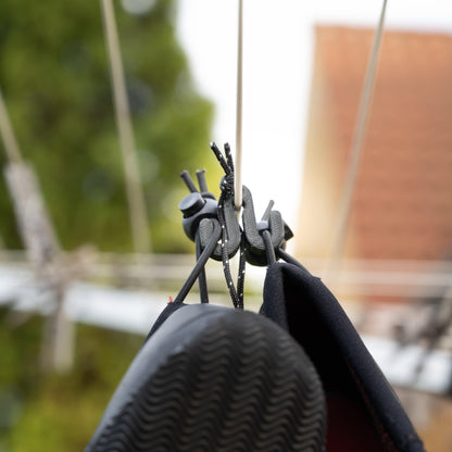 ShoeHook er det perfekte tilbehør til dine kajaksko. Før ShoeHook var der ikke rigtig nogen gode måder at tørre kajaksko på, udover at placere dem på jorden. Derfor har vi lavet ShoeHook, så dine sko kan lufttørre på en tørresnor og aldrig bliver blandet med andres sko eller sand igen.